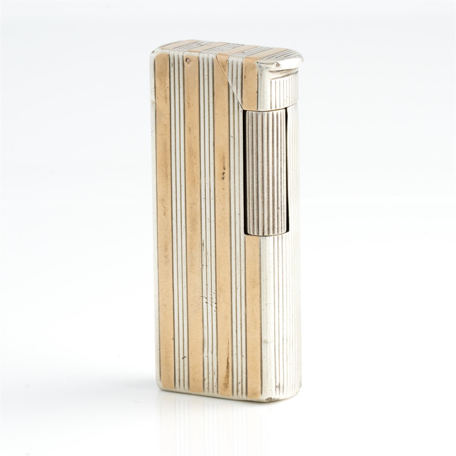 DUNHILL, A VINTAGE DIAMOND SET LIGHTER TO AN OUTER JACKET IN TWO TONE 18CT GOLD