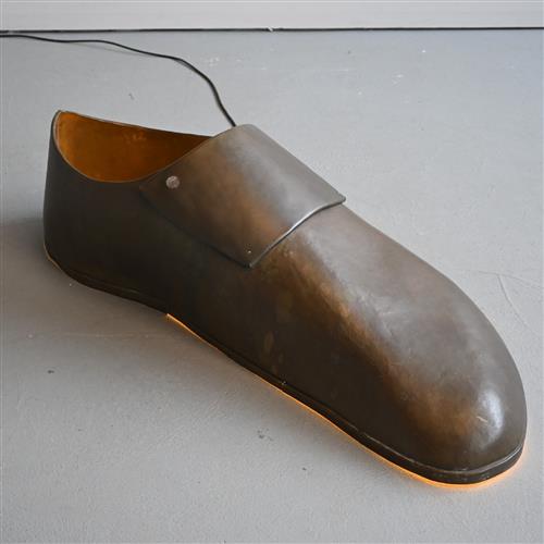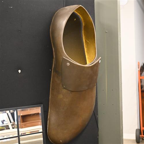A FRENCH 1930s COPPER SHOE SCULPTURE, THE INTERIOR WITH LATER-FITTED ILLUMINATION (41H X 125W X 45D CM) (LEONARD JOEL DELIVERY SIZE: X-LARGE)