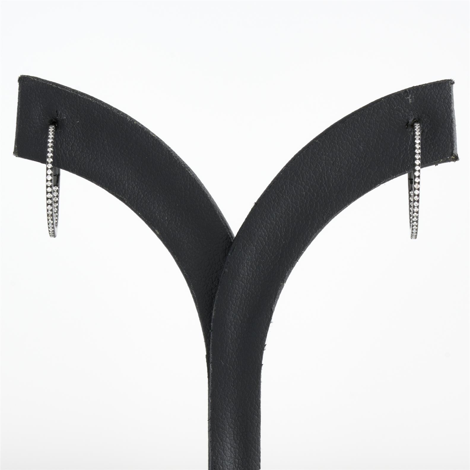 A PAIR OF DIAMOND EARRINGS IN BLACK GOLD, THE DIAMONDS TOTALLING APPROXIMATELY 0.20CTS, TO POST FITTINGS, 20MM
