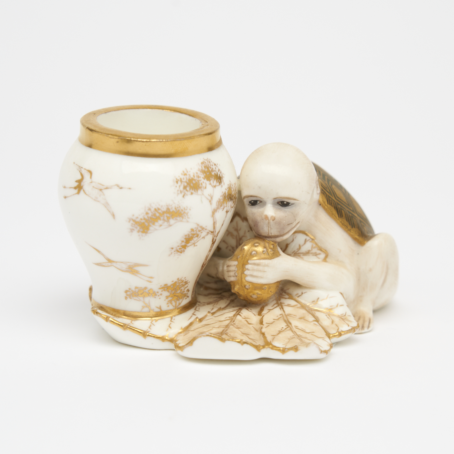 A MOORE BROS PORCELAIN INKPOT, WITH JAPANESE INSPIRED MYTHICAL FIGURE PART MONKEY PART TURTLE
