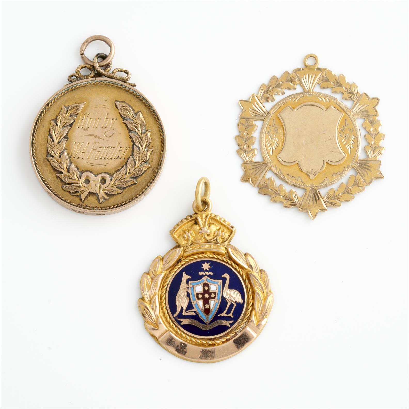 A COLLECTION OF THREE ANTIQUE MEDALLIONS IN 9CT GOLD, 16.3GMS
