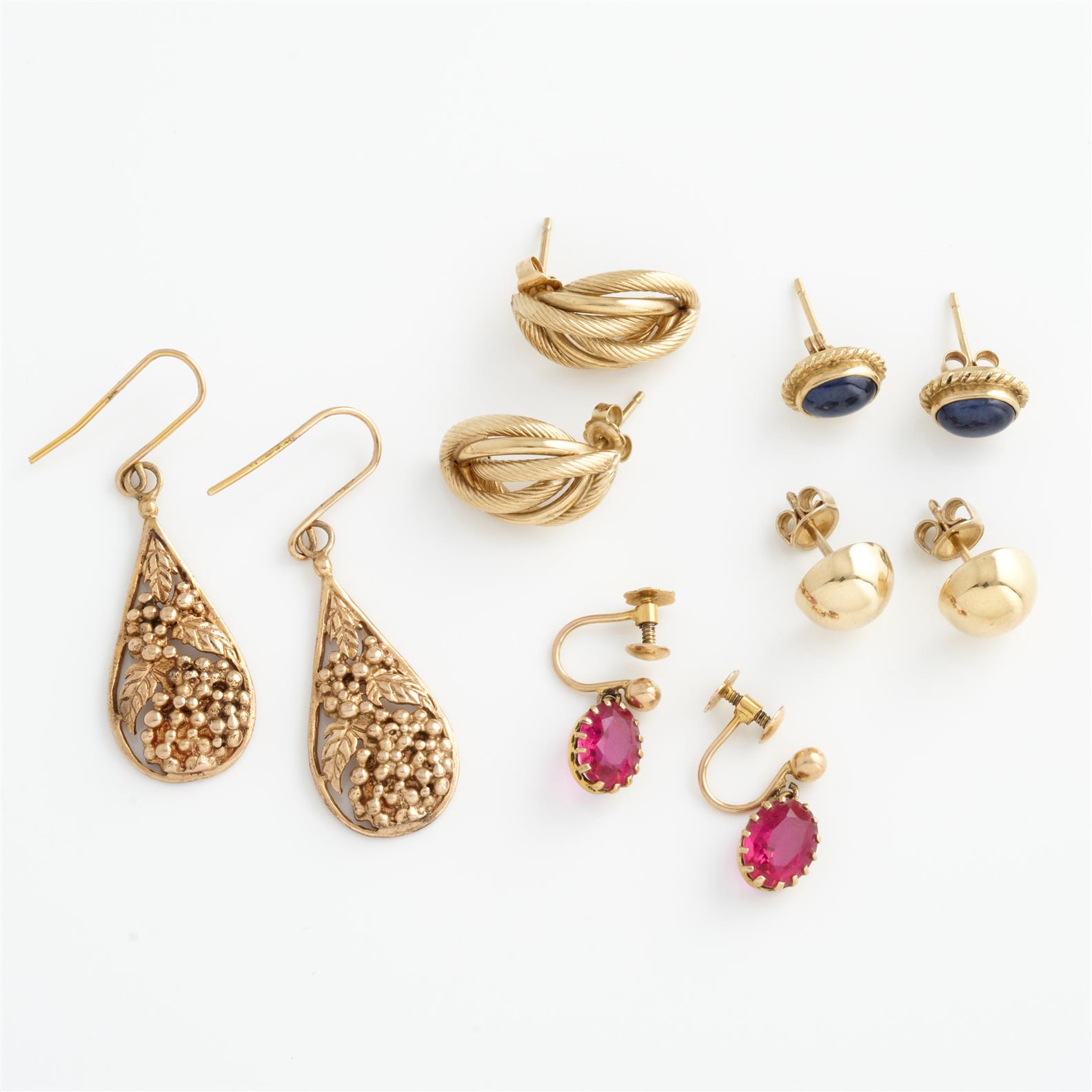 A COLLECTION OF FIVE PAIRS OF EARRINGS IN 9CT GOLD, 16.1GMS