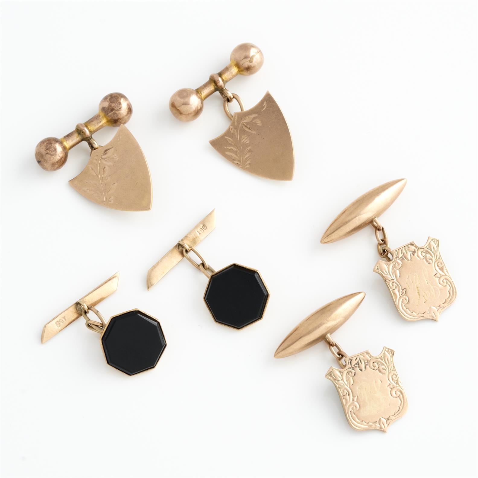 THREE PAIRS OF ANTIQUE CUFFLINKS IN 9CT, ONE STAMPED J.A&S, 17.0GMS