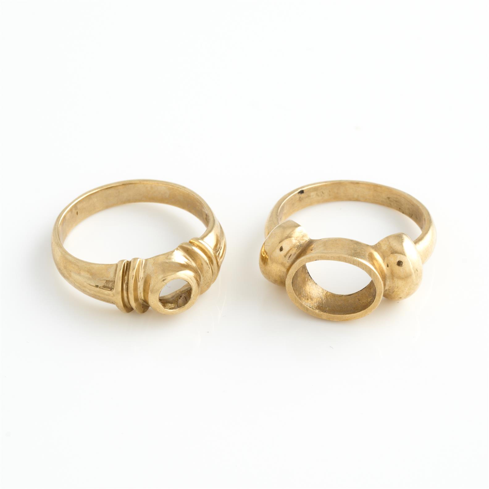 A PAIR OF RING MOUNTS IN 9CT GOLD, SIZES O AND P, 9.0GMS