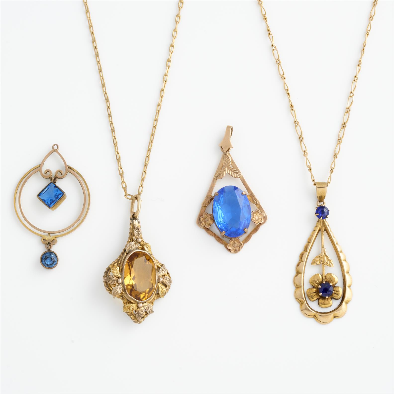 A COLLECTION OF TWO PENDANT NECKLACES IN 9CT GOLD, 440MM EACH, TOGETHER WITH TWO PENDANTS, 13.4GMS