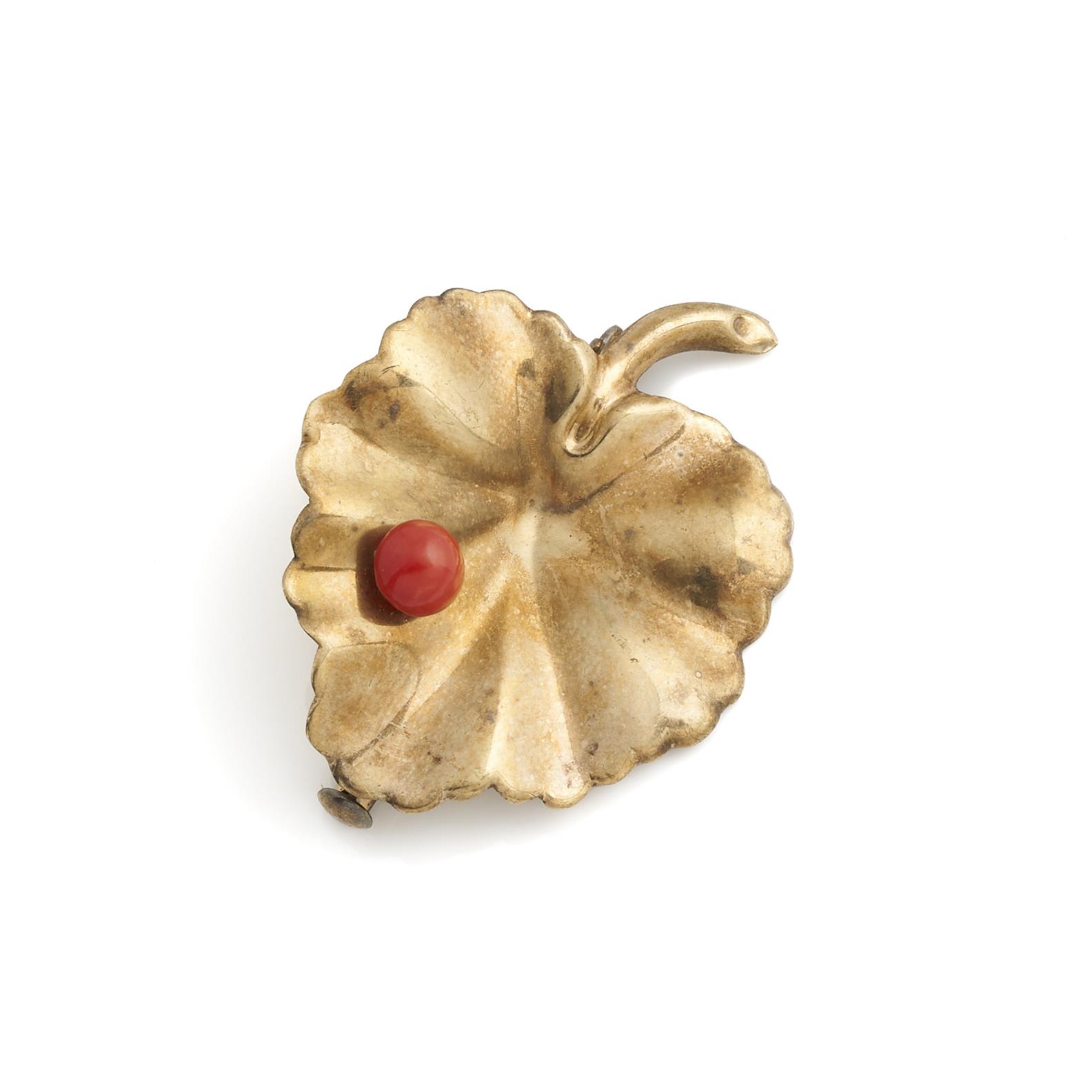 A CORAL BROOCH IN 8CT GOLD, 32 X 25MM, 3.1GMS