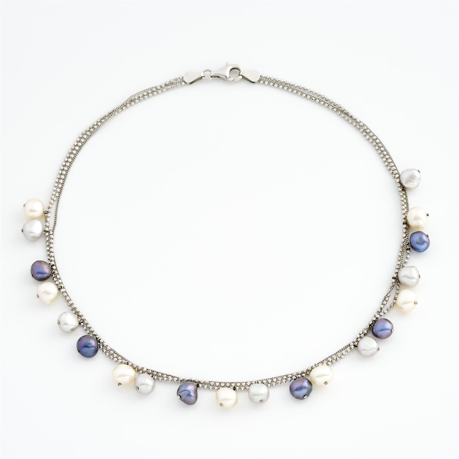 A MULTI STRAND FRESHWATER PEARL NECKLACE IN STERLING SILVER, 400MM