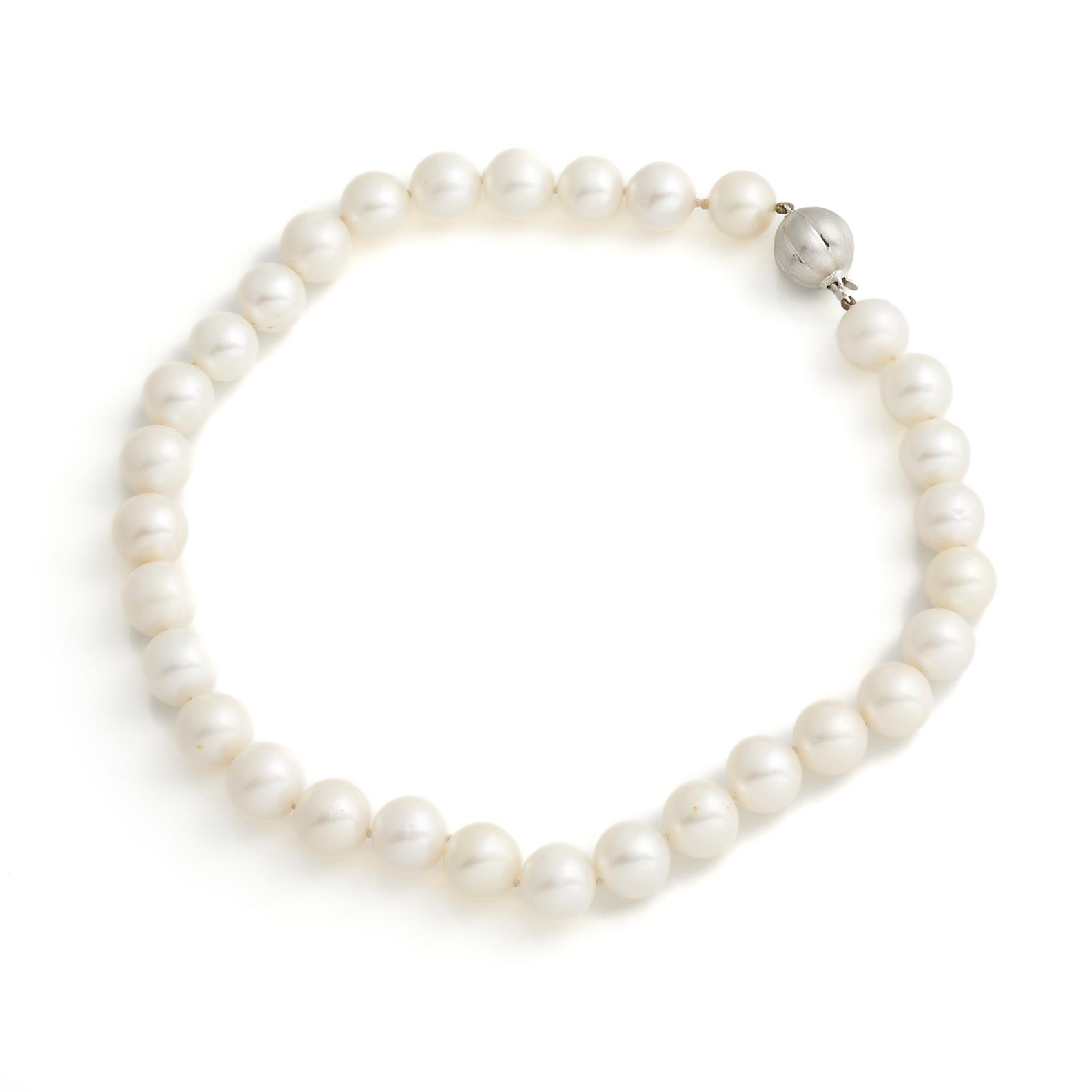A STRAND OF SOUTH SEA PEARLS TO A CLASP IN 18CT WHITE GOLD, THE PEARLS MEASURING 6-8MM, 360MM