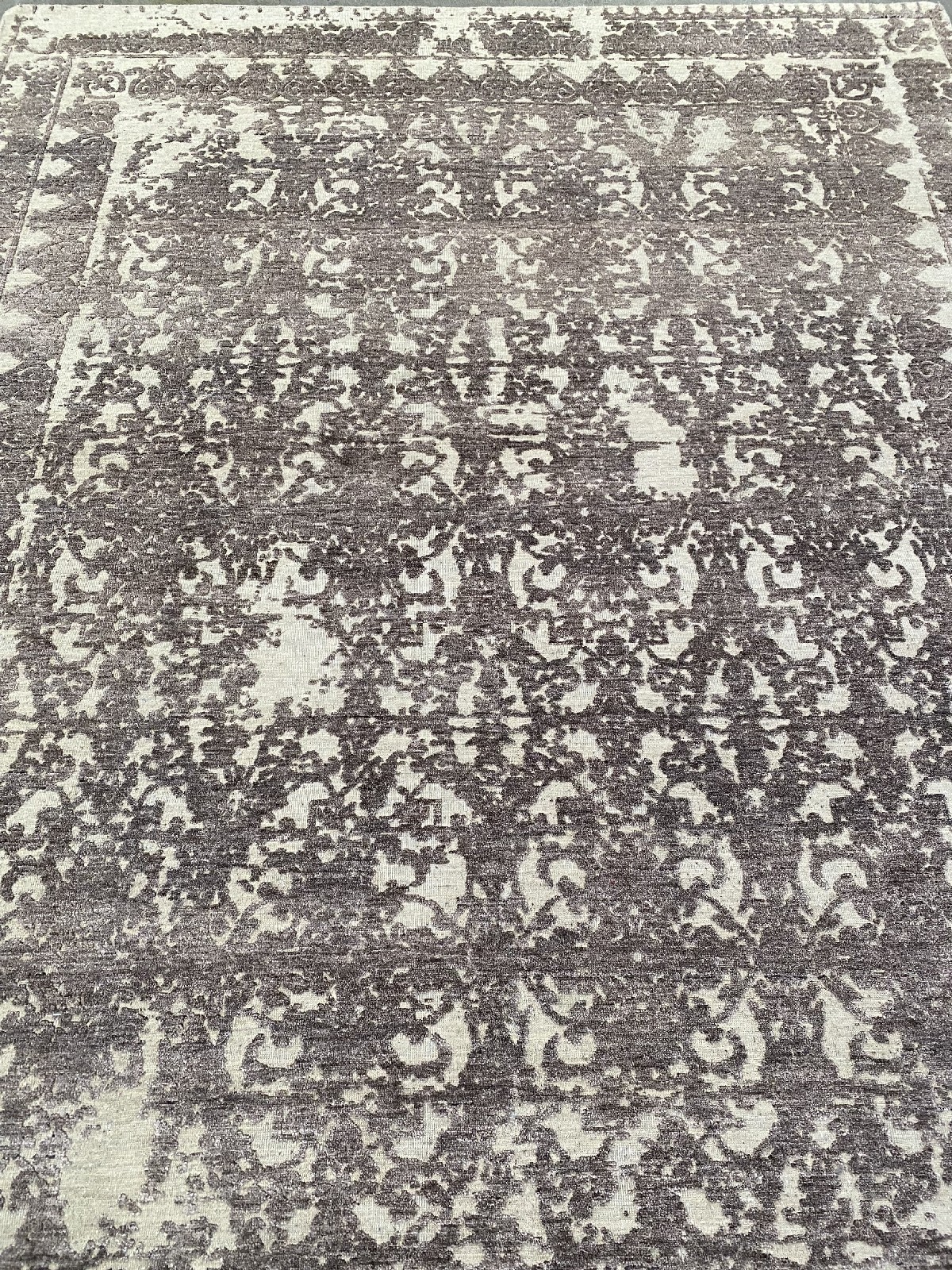 A NEW PALATIAL SIZE TENCEL SILK RUG. HANDKNOTTED WITH AN ALL-OVER COLOURFUL ABSTRACT DESIGN, IN TONES OF BLUES, IVORY, GREY AND RUST...