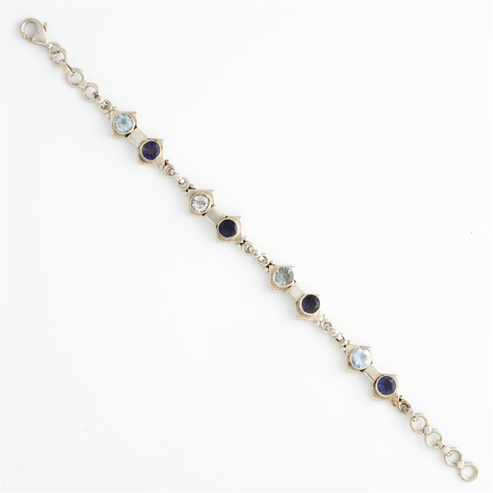 A SAPPHIRE AND DIAMOND BRACELET IN 18CT WHITE GOLD,THE SAPPHIRES TOTALLING 24.80CT WITH DIAMONDS TOTALLING 1.00CT, ACCOMPANIED BY A...