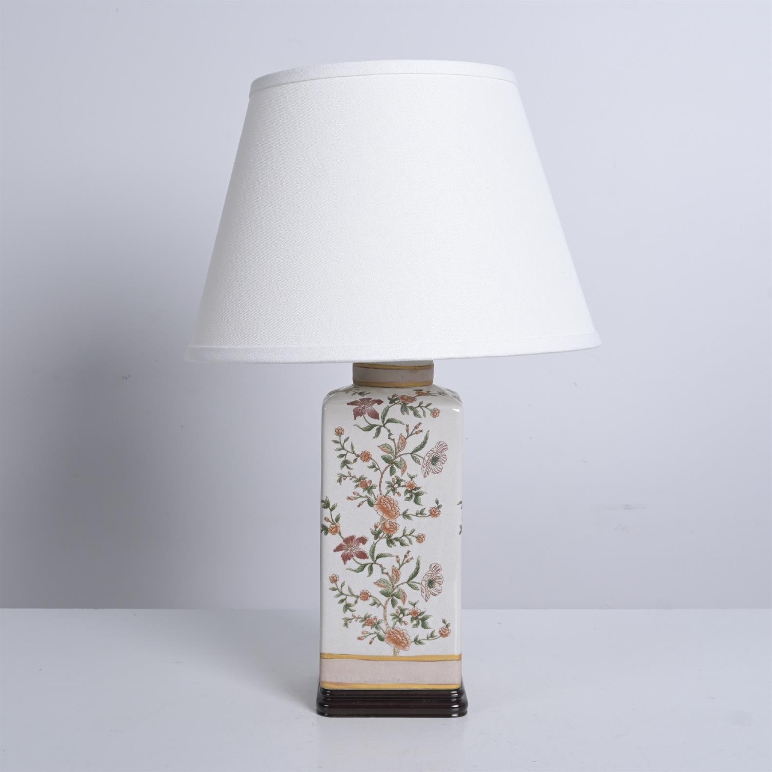 A CHINESE-STYLE FLORAL DECORATED TABLE LAMP WITH SHADE (64H X 38DIA CM) (LEONARD JOEL DELIVERY SIZE: MEDIUM)
