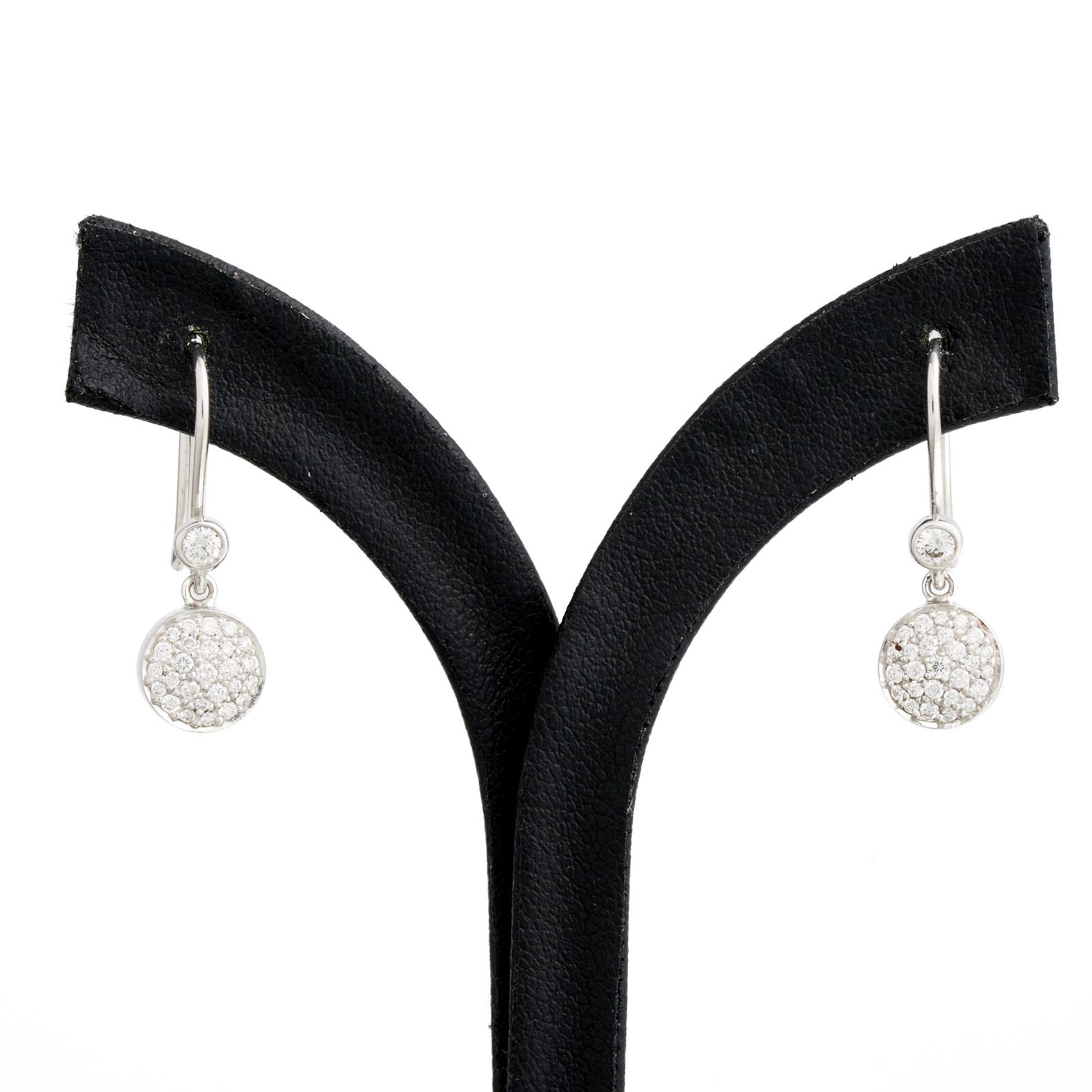 A PAIR OF DIAMOND CLUSTER EARRINGS IN 18CT WHITE GOLD, TO SHEPHERD HOOK FITTINGS, 22MM, 4.2GMS