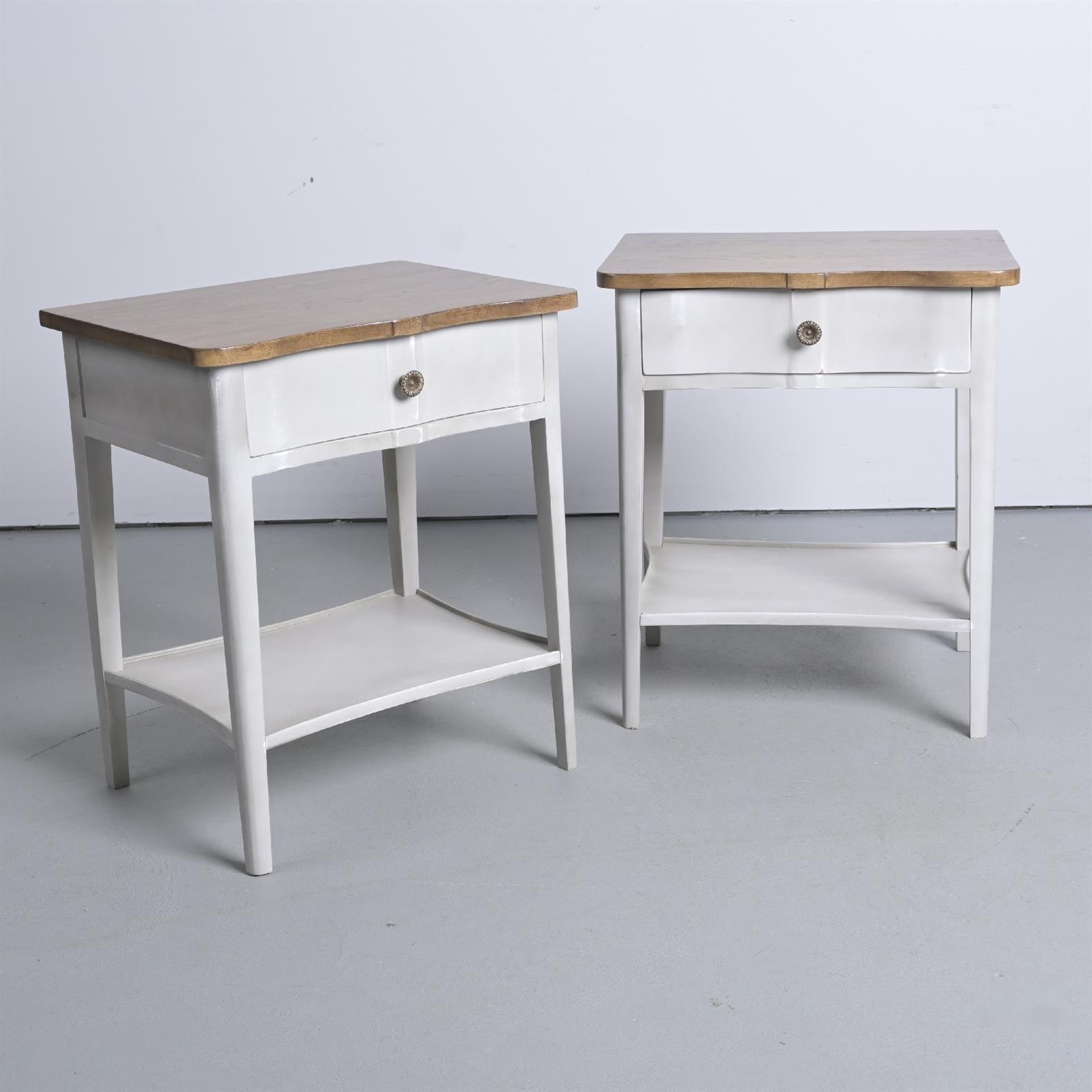 A PAIR OF SERPENTINE FRONTED BEDSIDE TABLES (71H X 60W X 45D CM) (LEONARD JOEL DELIVERY SIZE: X-LARGE)