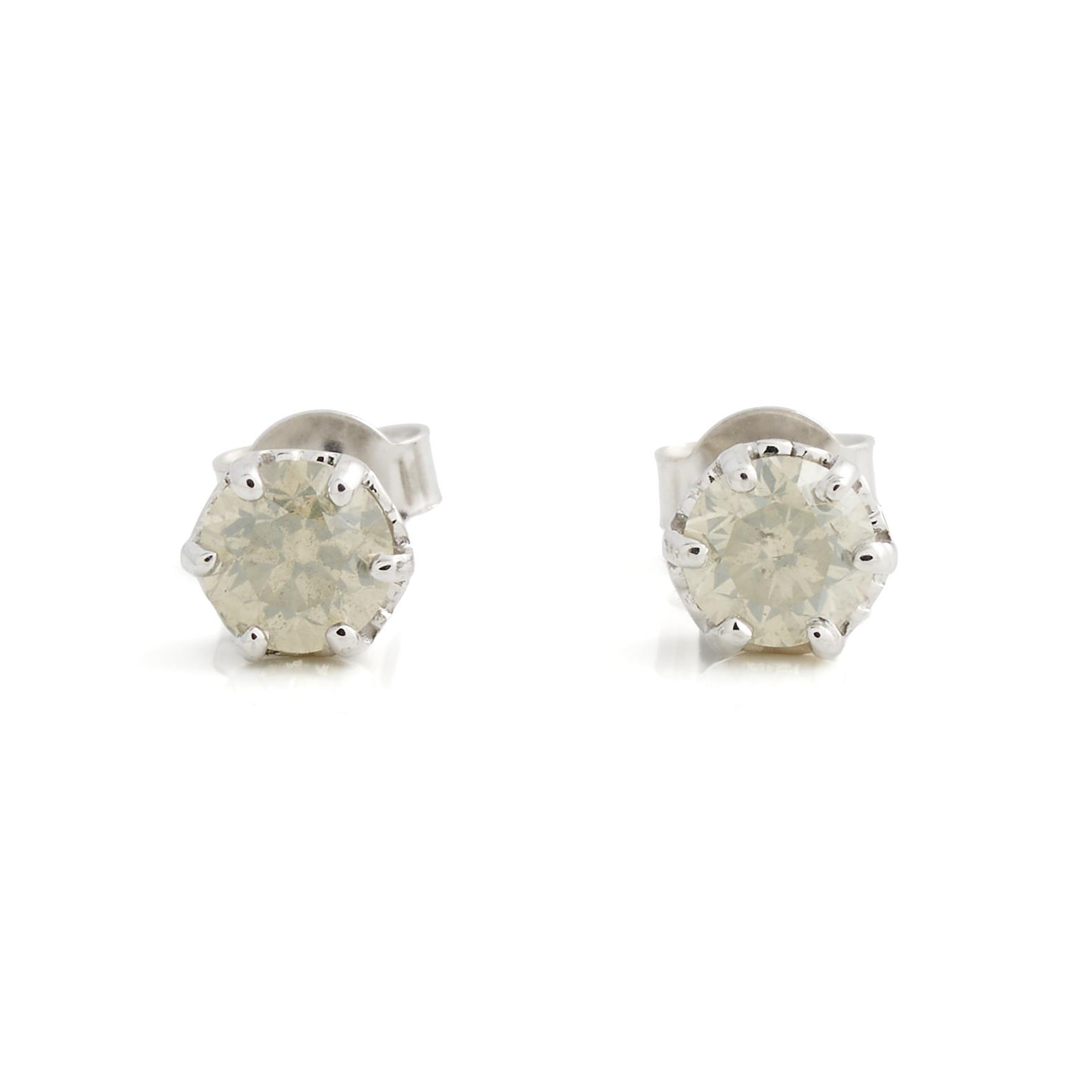 A PAIR OF DIAMOND STUD EARRINGS IN 18CT WHITE GOLD, THE DIAMONDS TOTALLING 1.16CTS, TO POST AND BUTTERFLY FITTINGS