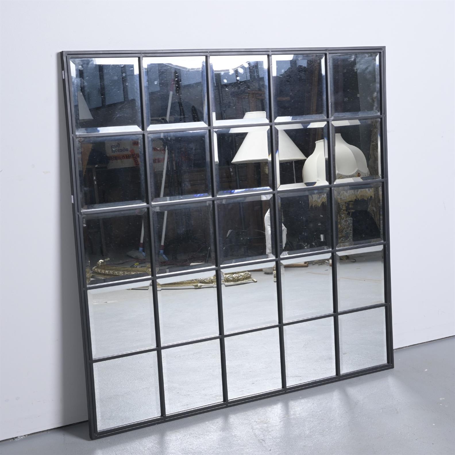 A BLACK FRAMED TWENTY FIVE PANEL BEVELLED WALL MIRROR (114H X 113W CM) (LEONARD JOEL DELIVERY SIZE: LARGE)