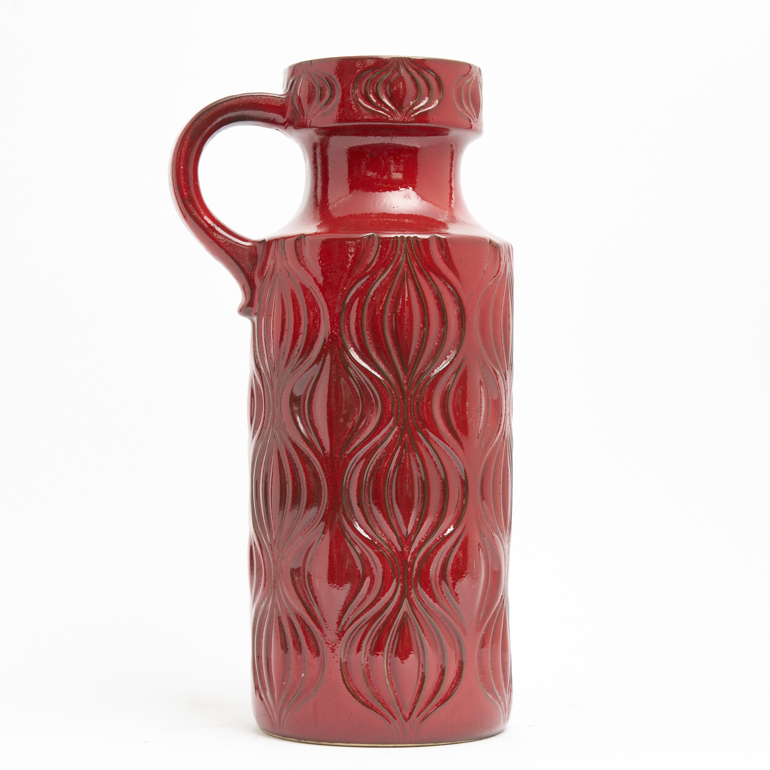 A LARGE WEST GERMAN SINGLE HANDLED RED POTTERY VASE H.46CM, LEONARD JOEL DELIVERY SIZE: MEDIUM