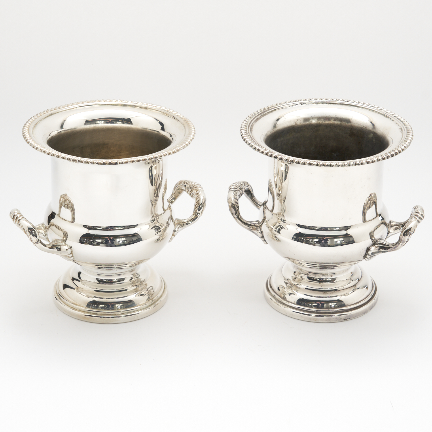 A PAIR OF AUSTRALIAN MADE VINERS SILVER PLATE TWIN HANDLED CHAMPAGNE/ICE BUCKETS H.24CM, LEONARD JOEL DELIVERY SIZE: MEDIUM