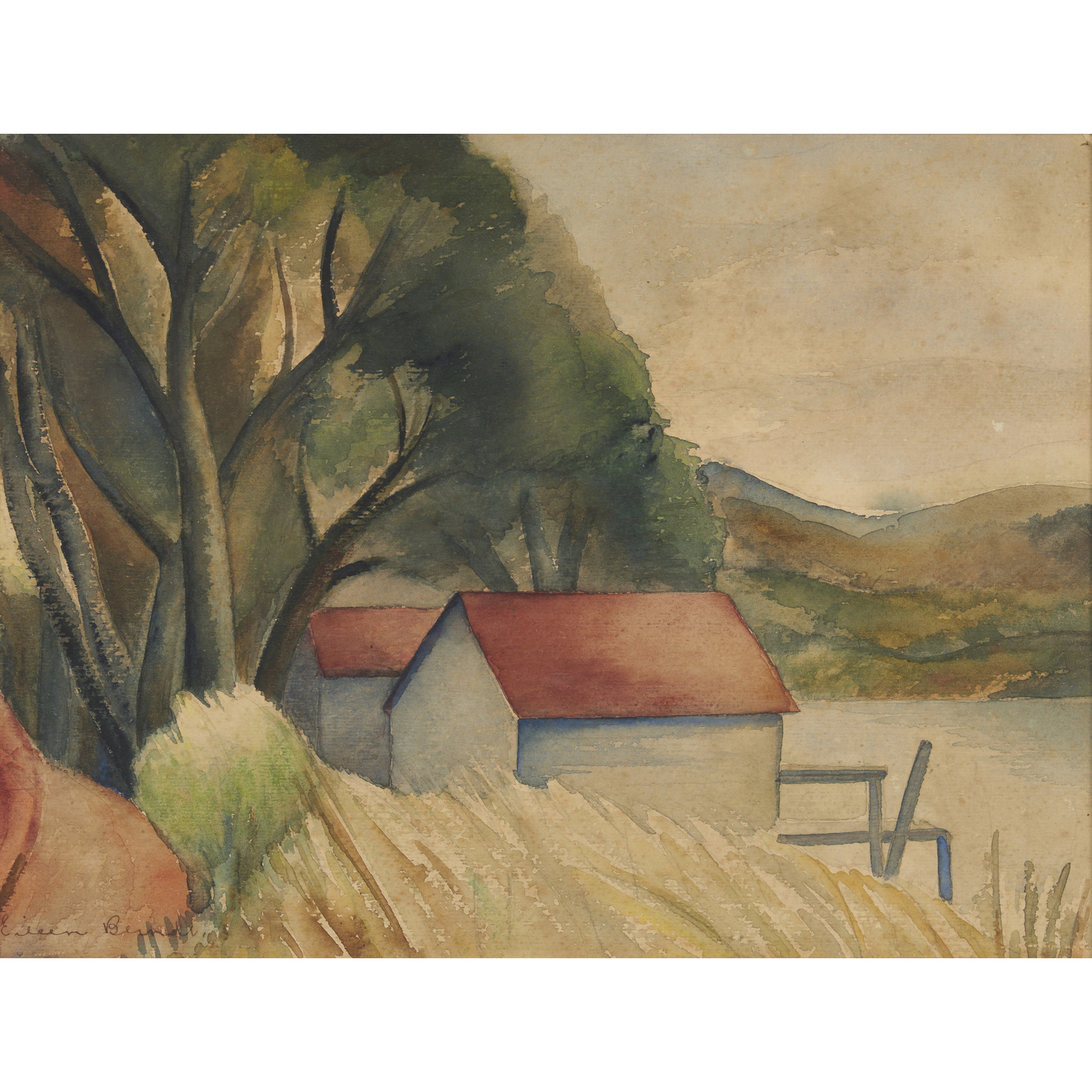 CLARICE BECKETT (1887-1935) Soft Evening Study for Princes Bridge c.1930 (verso) oil on board, double-sided 20.5 x 20.5cm