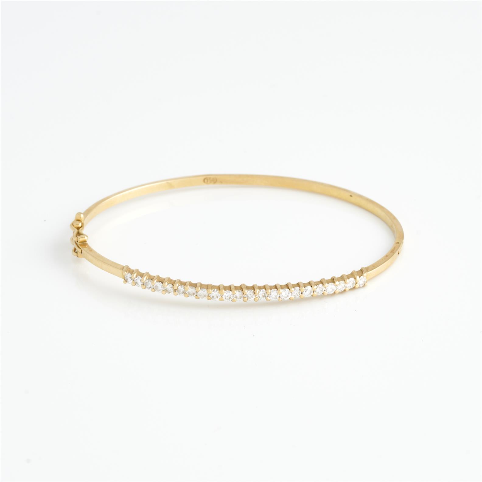 A HINGED DIAMOND BANGLE IN 18CT GOLD, INNER DIAMETER 60MM, 9.2GMS