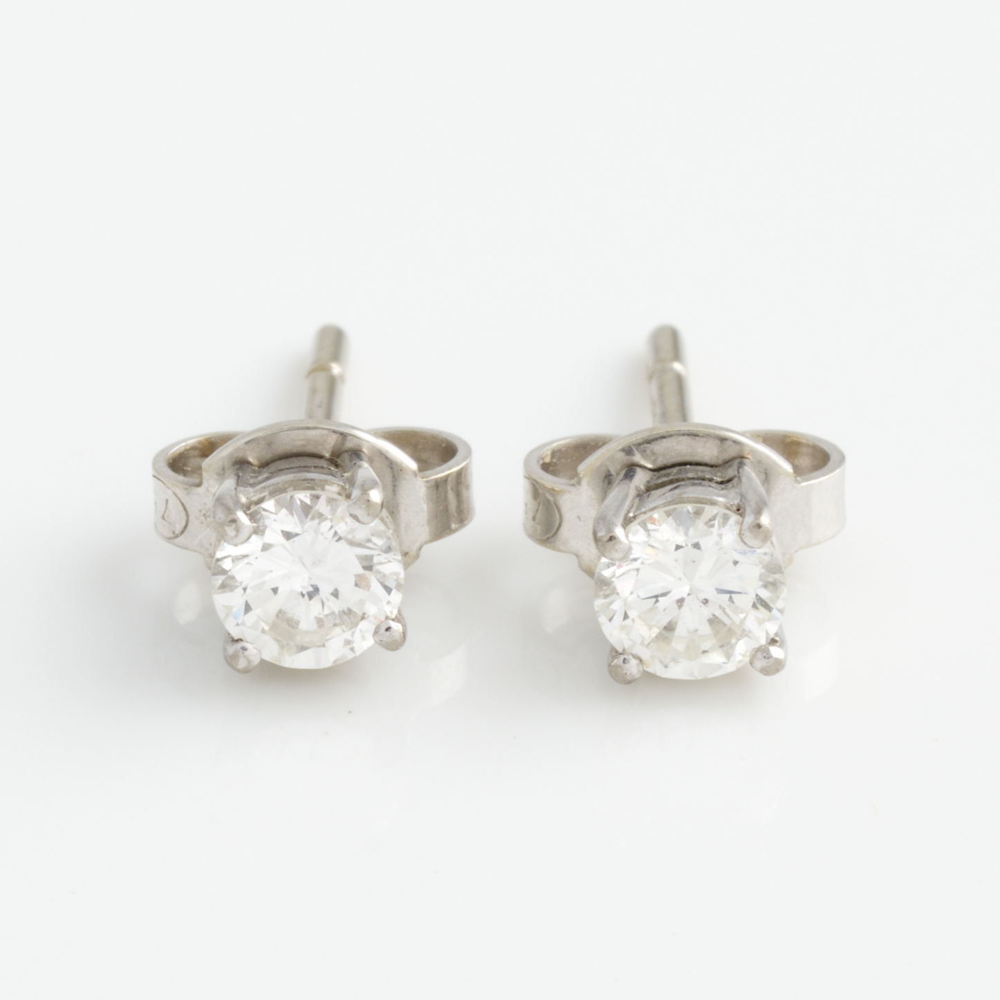 A PAIR OF DIAMOND EARRINGS IN 18CT WHITE GOLD, THE DIAMONDS TOTALLING APPROXIMATELY 0.60CTS, TO POST AND BUTTERFLY FITTINGS