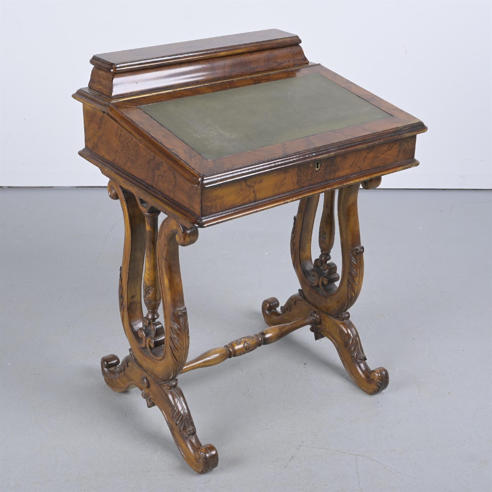 A VICTORIAN-STYLE DAVENPORT, ON LYRE-SHAPED SUPPORTS, GRAIN PAINTED TO SIMULATE FIGURED WALNUT (H82 W60 D52 CM) (LEONARD JOEL DELIVERY SIZE: LARGE)