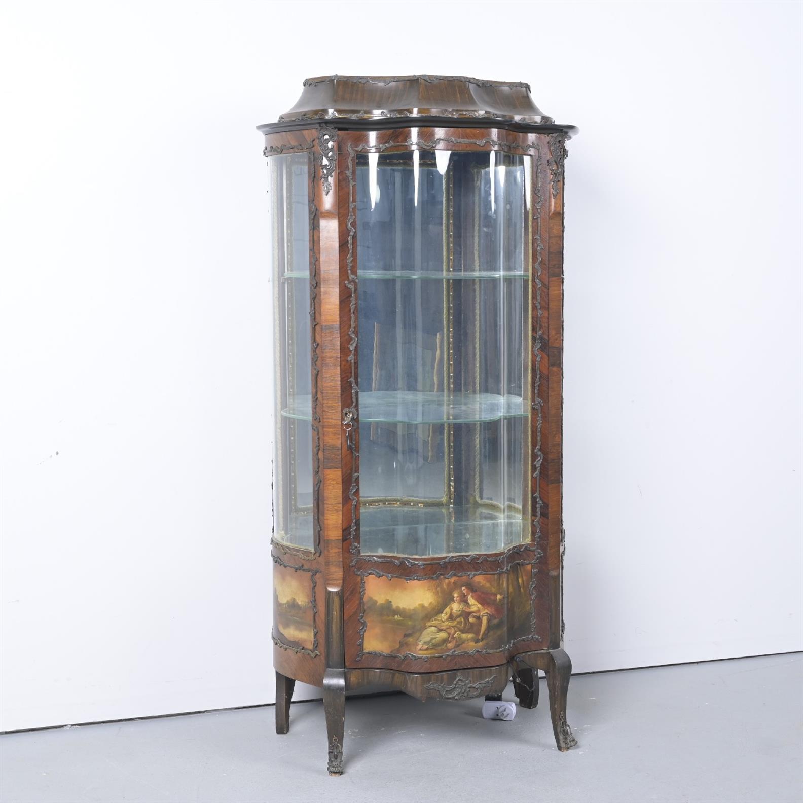 A LATE 19th CENTURY LOUIS XV-STYLE ROSEWOOD VITRINE WITH 'VERNIS MARTIN' TYPE DECORATION (A/F) (65H X 85W X 45D CM) (LEONARD JOEL DELIVERY SIZE: X-LARGE)