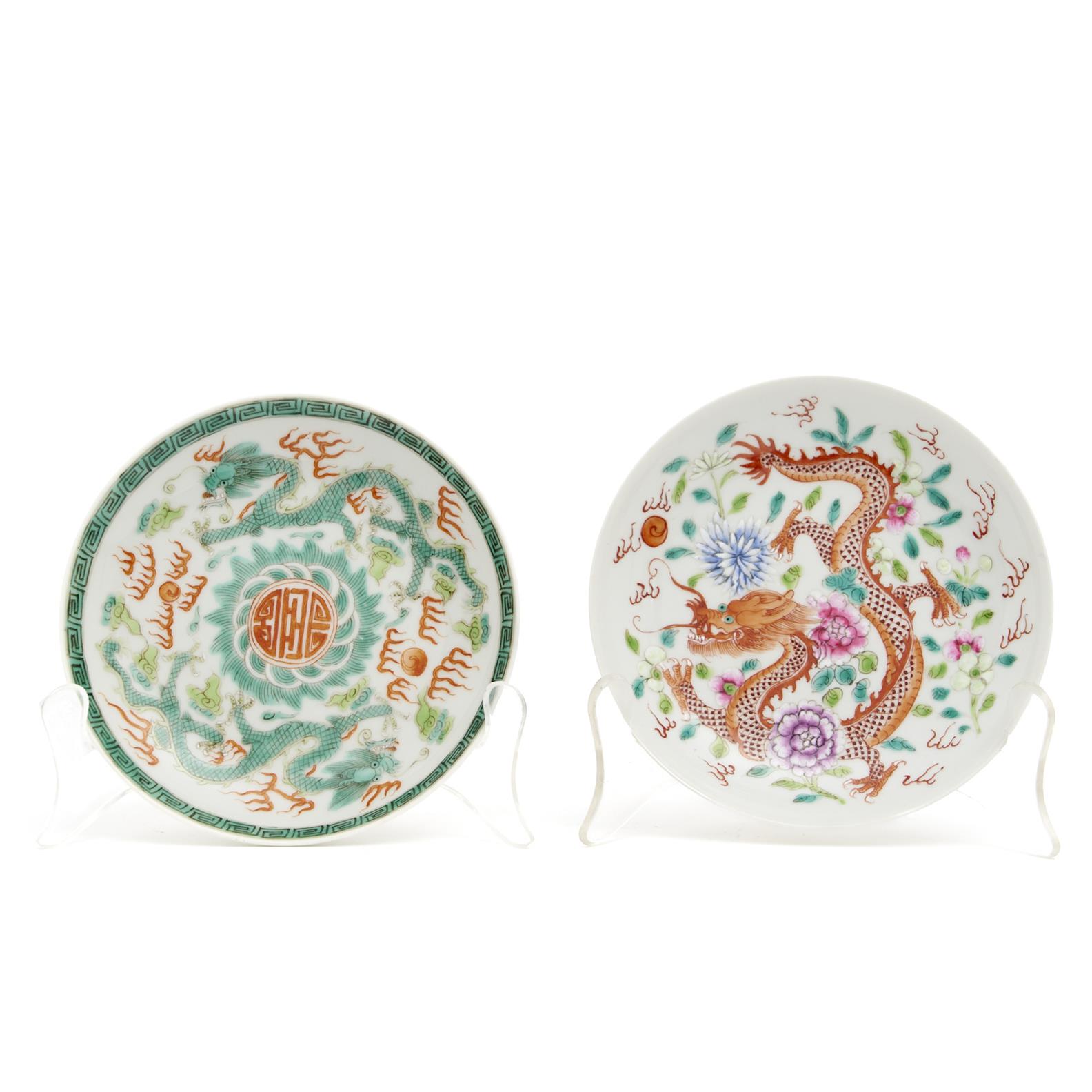 A PAIR OF CHINESE PORCELAIN DRAGON DISHES DIA.13CM, LEONARD JOEL DELIVERY SIZE: SMALL