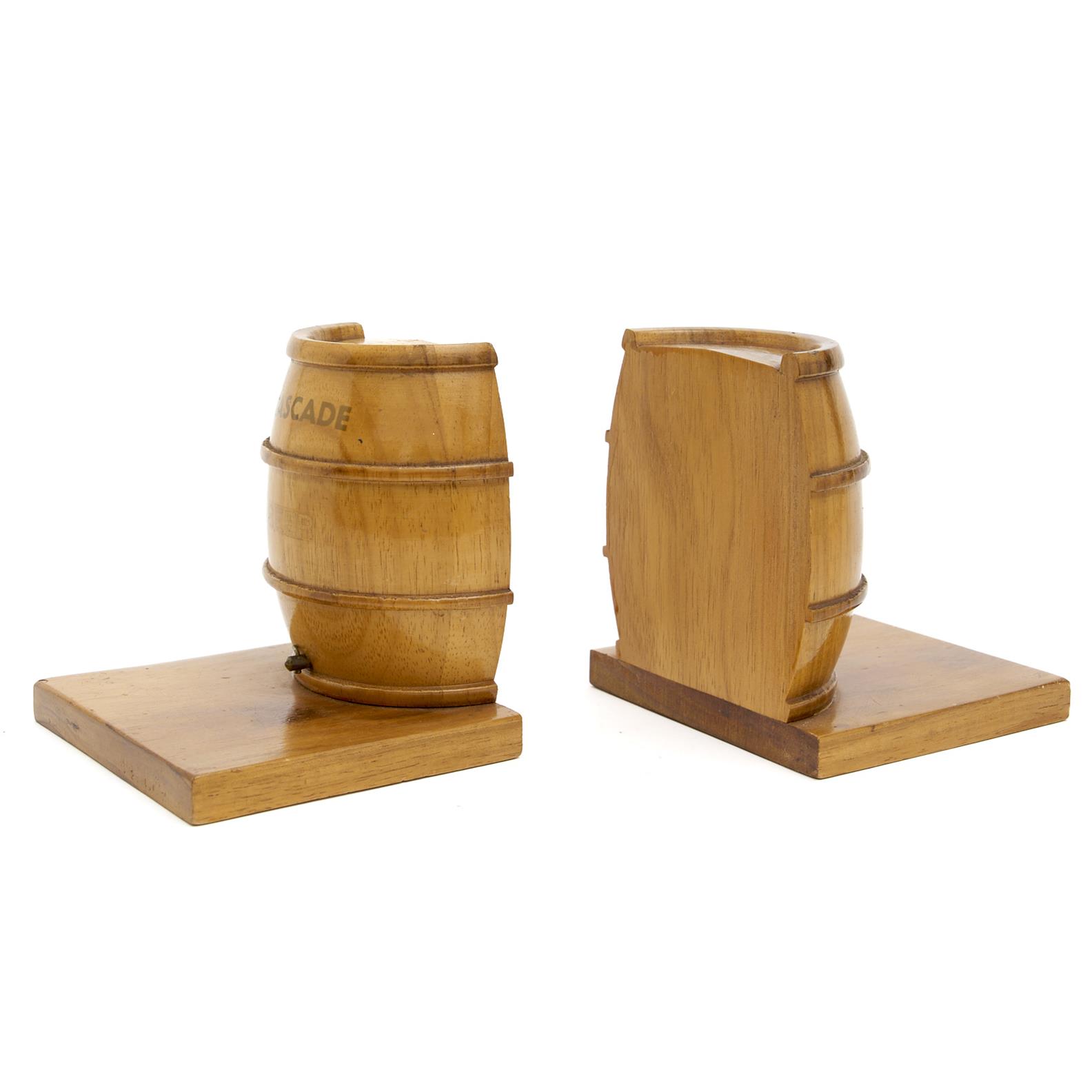 A PAIR OF VINTAGE CASCADE BEER KEG BOOKENDS IN TASMANIAN BLACKWOOD H.13.5CM, LEONARD JOEL DELIVERY SIZE: SMALL