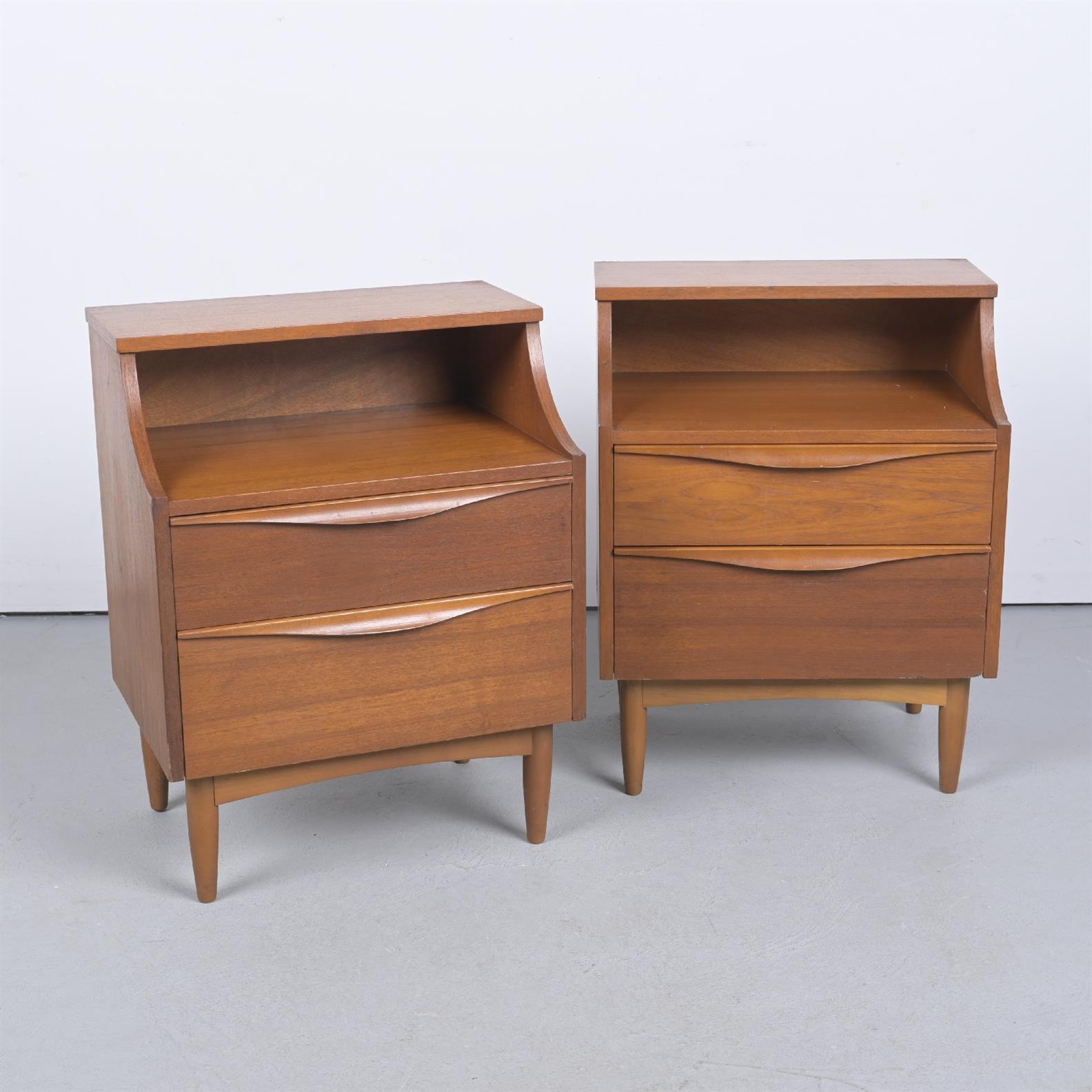 A PAIR OF 1960's/70's TEAK BEDSIDE TABLES FOR RELIANCE FURNITURE (71H X 56W X 39D CM) (LEONARD JOEL DELIVERY SIZE: LARGE)