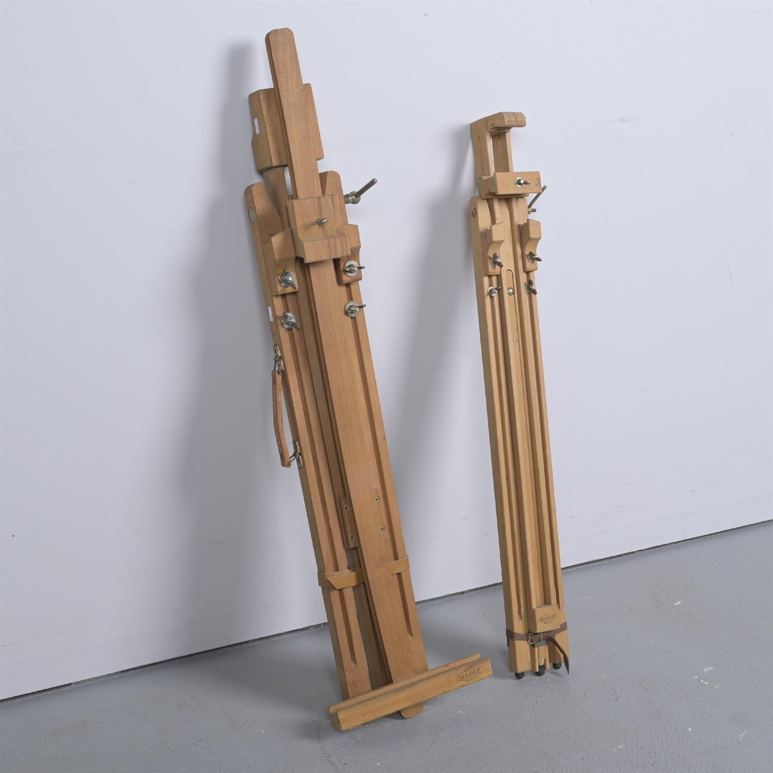 TWO FOLDING ARTIST'S EASELS (LARGEST 105H CM) (LEONARD JOEL DELIVERY SIZE: LARGE)