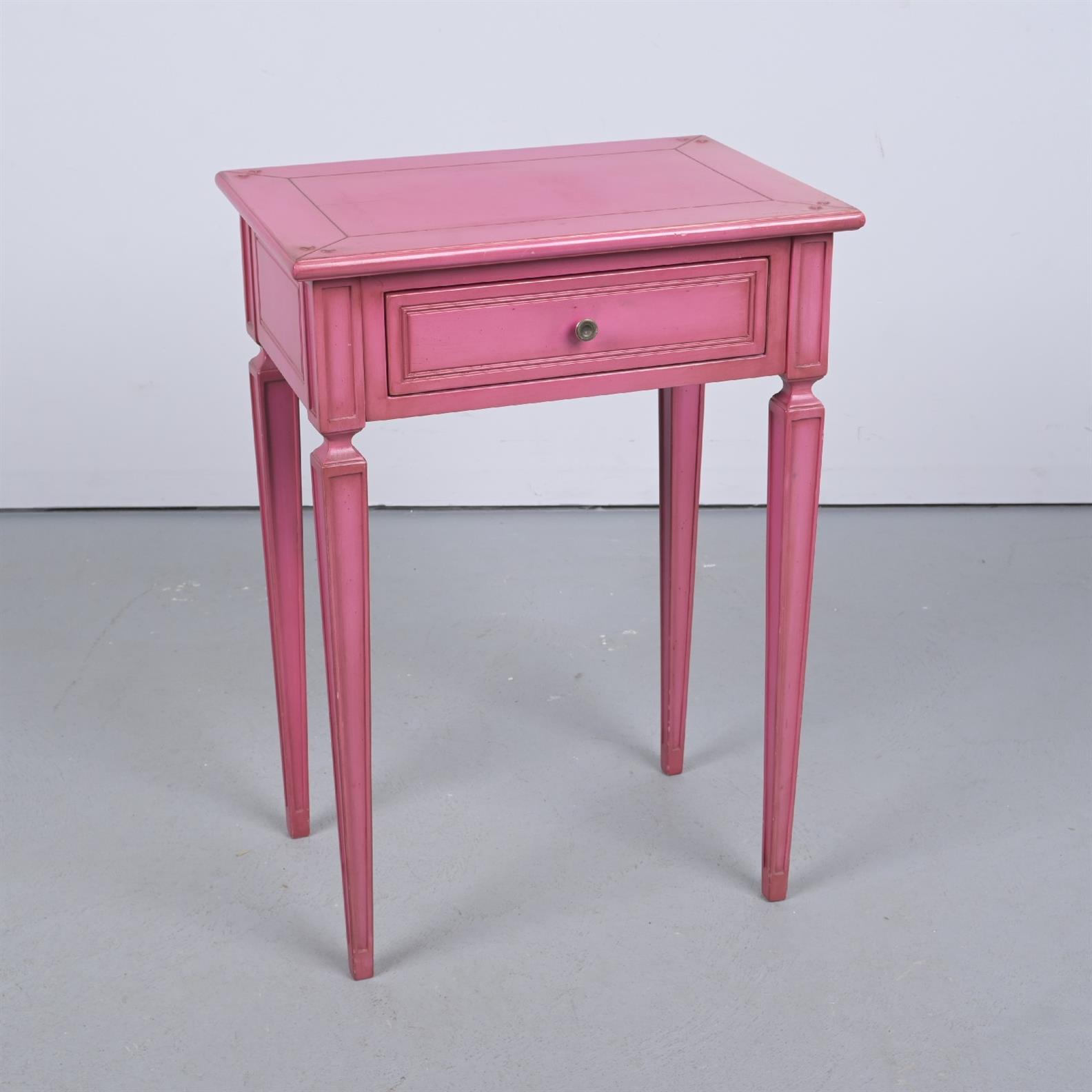 A LOUIS XVI-STYLE PINK PAINTED BEDSIDE TABLE MADE BY MONTIGNY (70H X 50W X 35D CM) (LEONARD JOEL DELIVERY SIZE: LARGE)