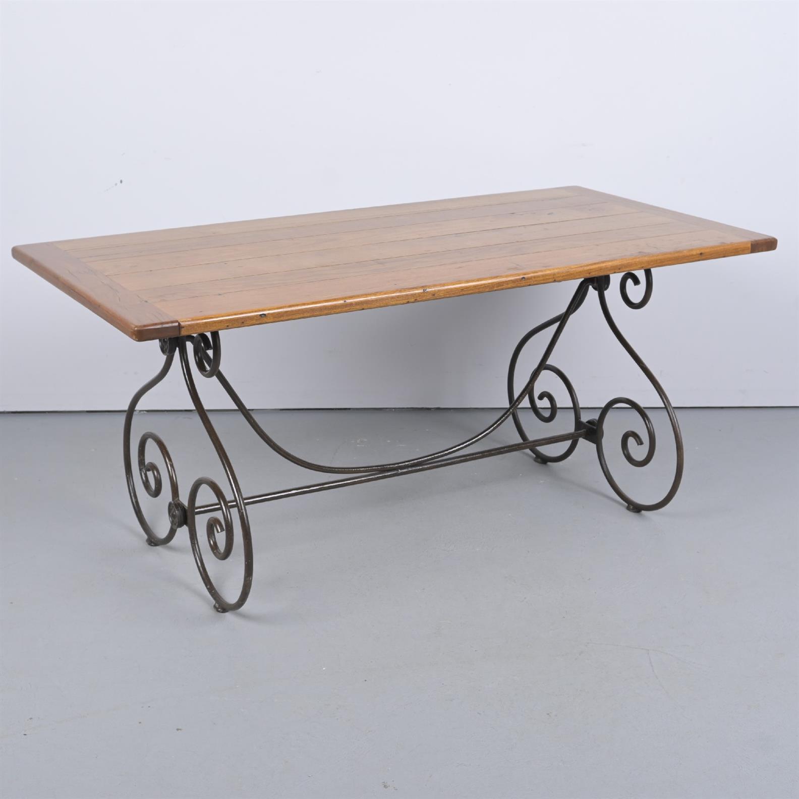 A WROUGHT IRON AND VICTORIAN ASH DINING TABLE (75HX 167W X 82D CM) (THIS ITEM MUST BE REMOVED BY CARRIERS AT THE CUSTOMER'S EXPENSE. LEONARD JOEL STAFF CANNOT ASSIST CARRYING THIS ITEM)