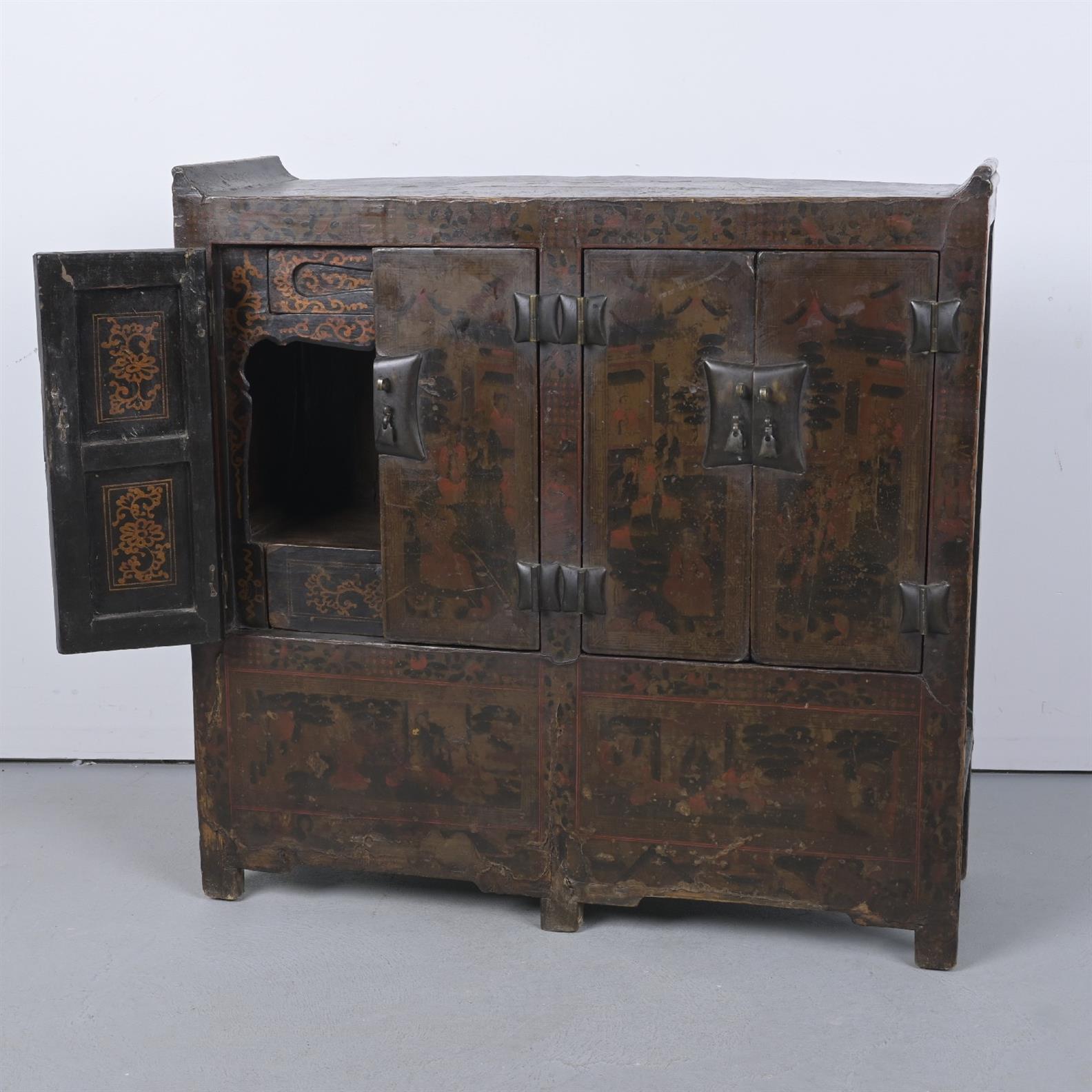 A LATE 19th CENTURY CHINESE BLACK LACQUERED CABINET (105H X 107W X 36D CM) (LEONARD JOEL DELIVERY SIZE: X-LARGE)
