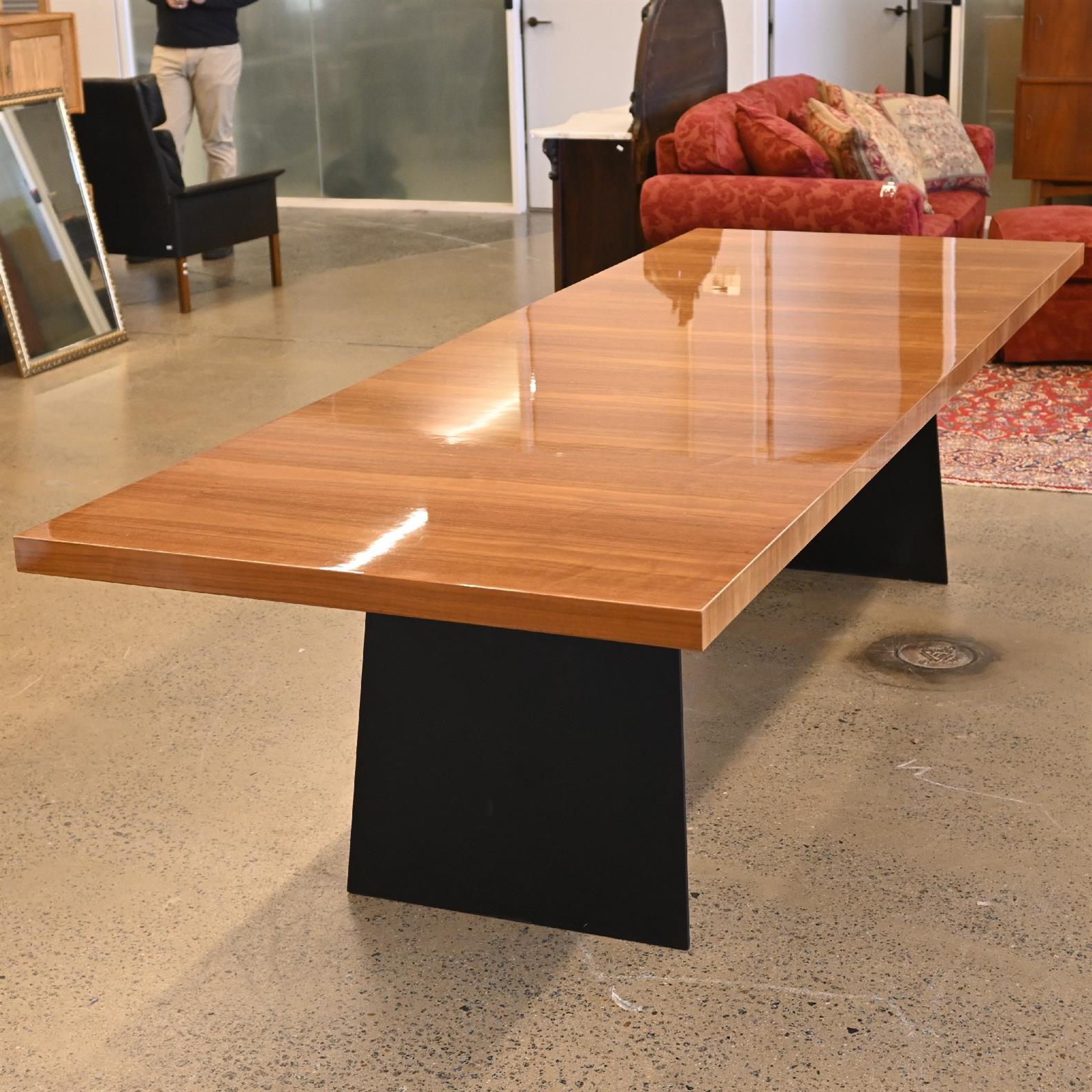 A HARDWOOD AND STEEL DINING TABLE FOR MORTICE AND TENON (75H X 290W X 100D CM) (THIS ITEM MUST BE REMOVED BY CARRIERS AT THE CUSTOMER'S EXPENSE. LEONARD JOEL STAFF CANNOT ASSIST CARRYING THIS ITEM)