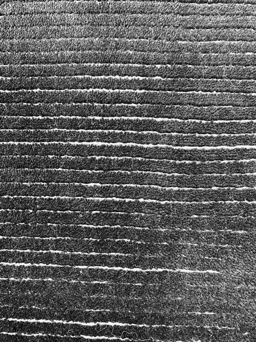 A NEW HAND-MADE MODERN 100% WOOLEN RUG. BLACK-TONED PILE WITH IVORY LOOPS THROUGHOUT. ORIGIN: RAJASTHAN (305 X 245 CM) (PLEASE NOTE THERE MAY BE SOME COLOUR VARIATION FROM PHOTOGRAPH)