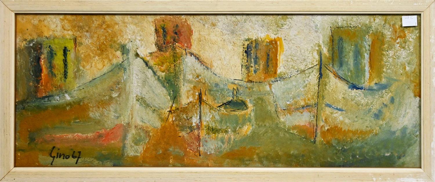 OIL ON BOARD, SIGNED 'GINO 67' LOWER LEFT, 23.5 X 62.5CM, FRAME SIZE: 28 X 63CM