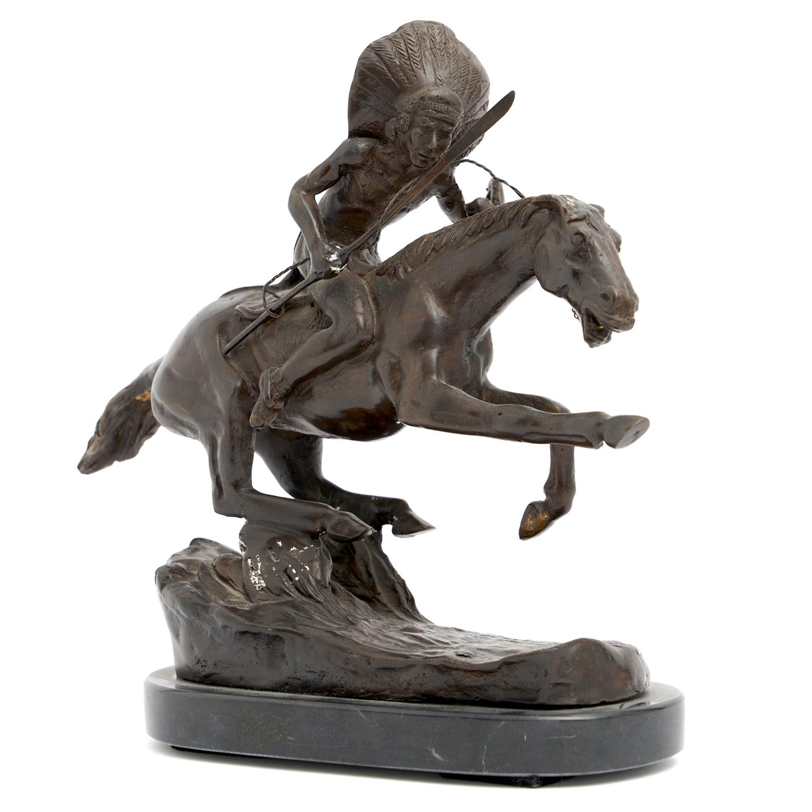 A BRONZE OF A NATIVE AMERICAN WARRIOR ON HORSEBACK H.28CM, LEONARD JOEL DELIVERY SIZE: MEDIUM