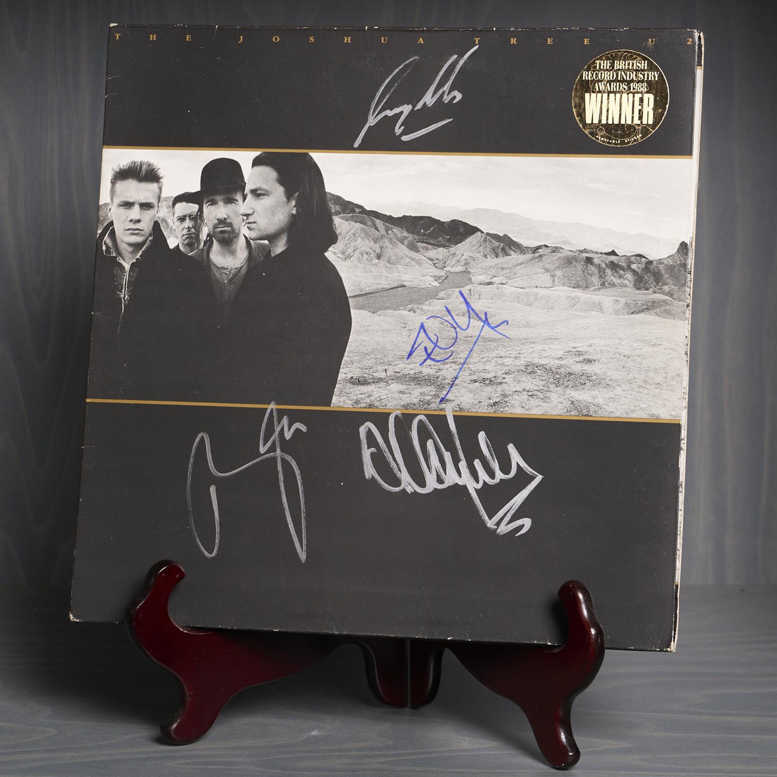 U2 'THE JOSHUA TREE ' LP WITH SIGNATURES H.31CM, LEONARD JOEL DELIVERY SIZE: SMALL