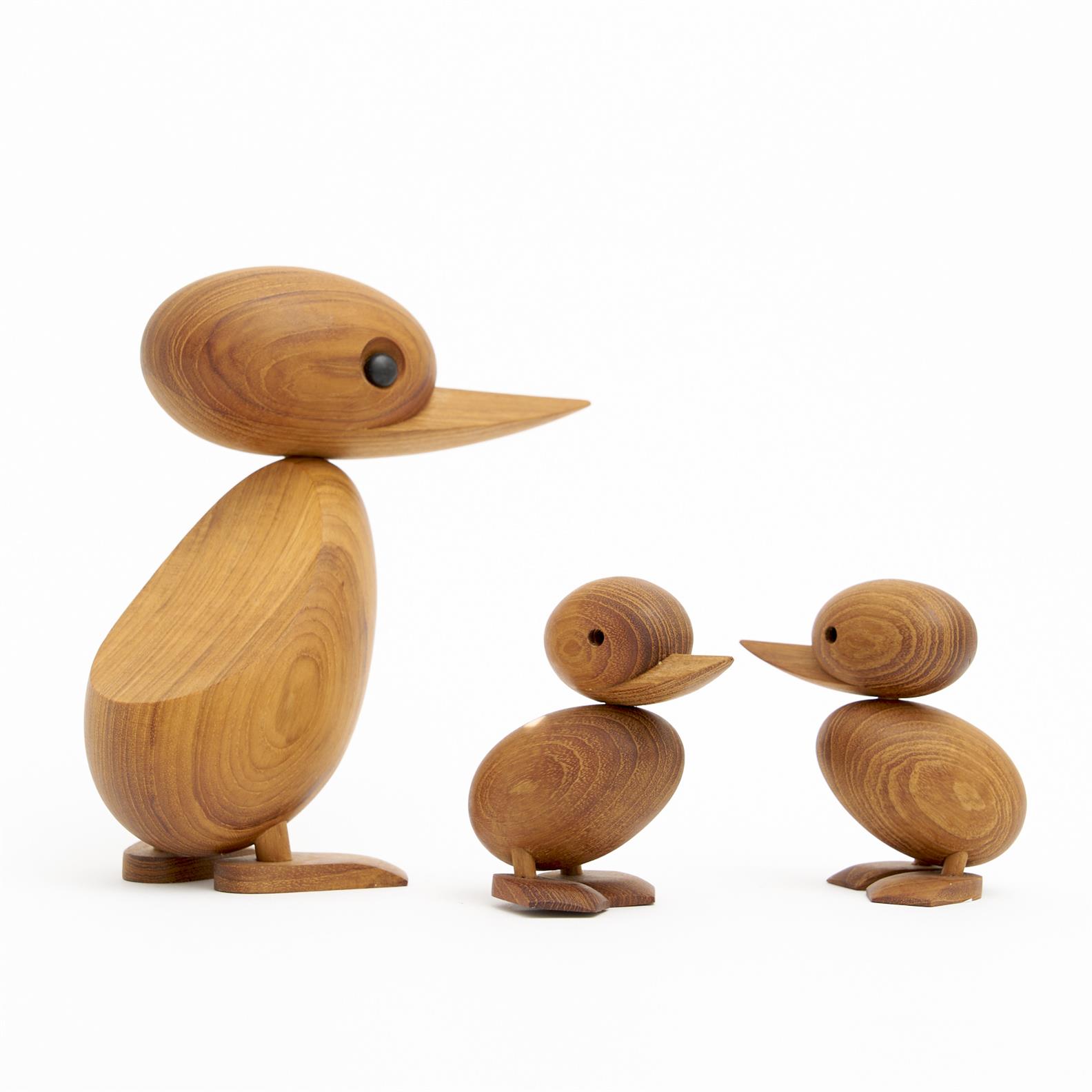 A TRIO OF DANISH DESIGNED TEAK BIRDS, ALL SIGNED, H.18.5CM (TALLEST), LEONARD JOEL DELIVERY SIZE: SMALL