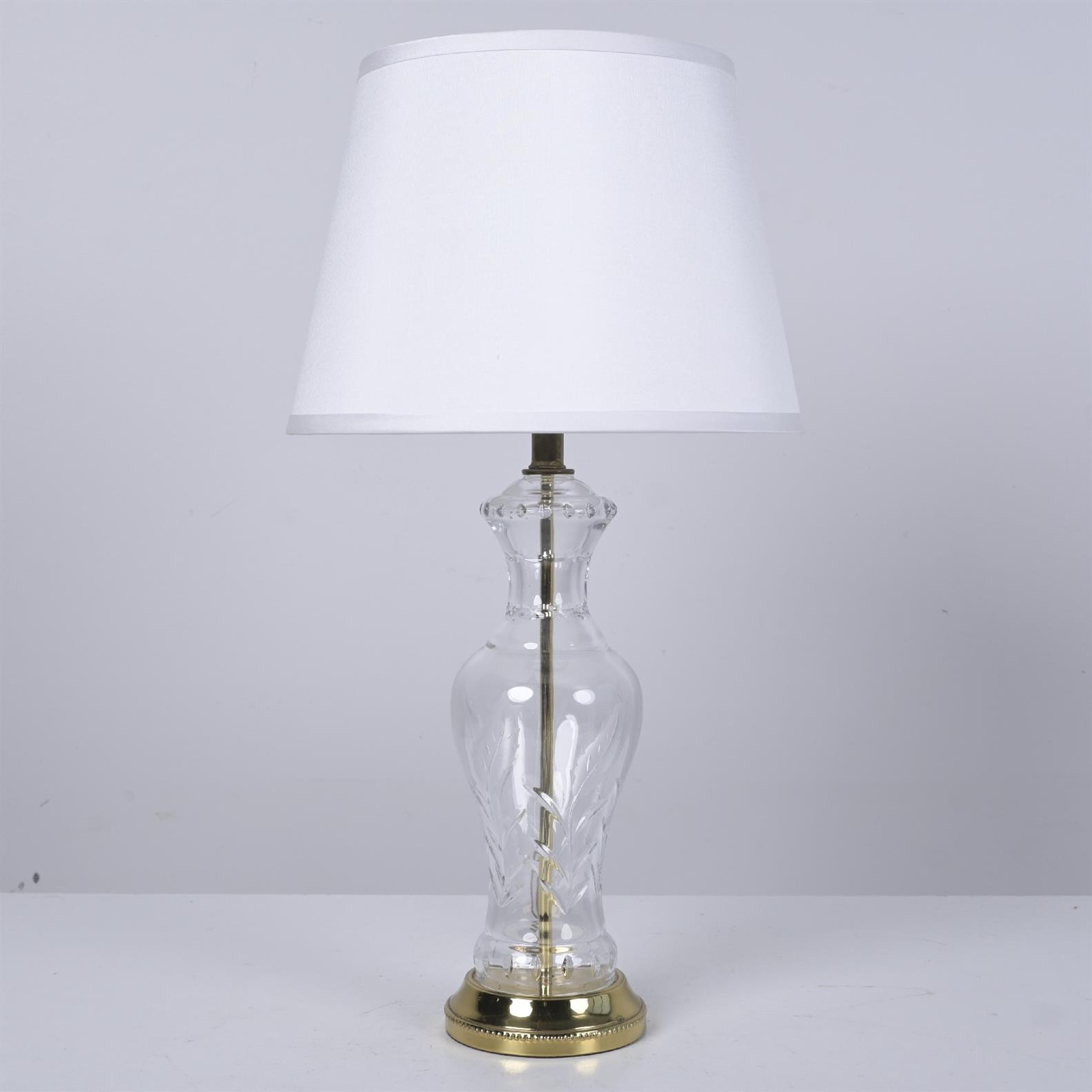 AN ETCHED CRYSTAL TABLE LAMP WITH SHADE (68H X 33DIA CM) (LEONARD JOEL DELIVERY SIZE: MEDIUM)
