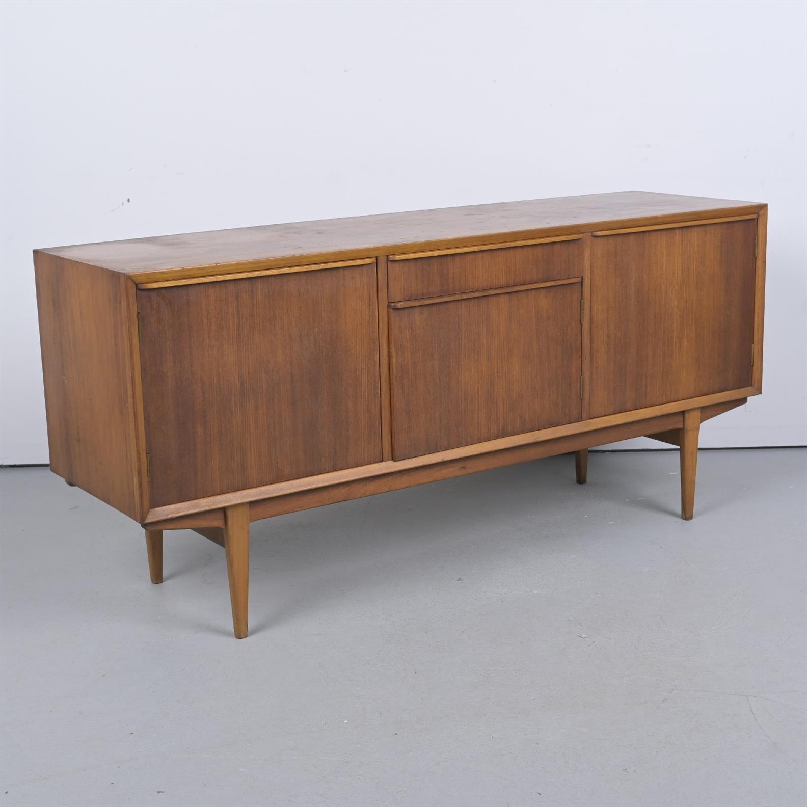 A 1950's TEAK SIDEBOARD ON BULLET LEGS (A/F) (64H X 159W X 46D CM) (LEONARD JOEL DELIVERY SIZE: X-LARGE)