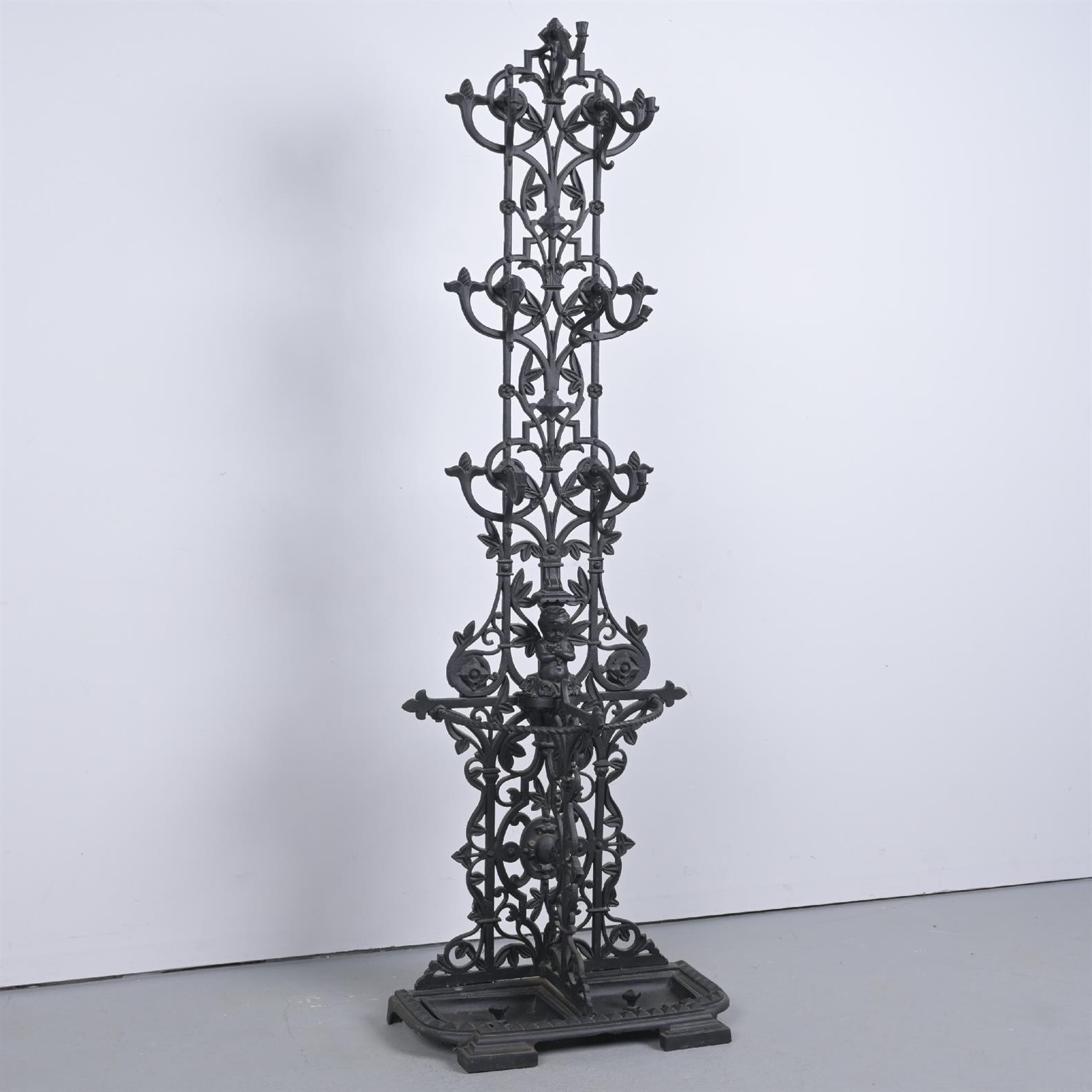 A VICTORIAN-STYLE CAST IRON HALL-STAND (195H X 62W X 33D CM) (THIS ITEM MUST BE REMOVED BY CARRIERS AT THE CUSTOMER'S EXPENSE. LEONARD JOEL STAFF CANNOT ASSIST CARRYING THIS ITEM)