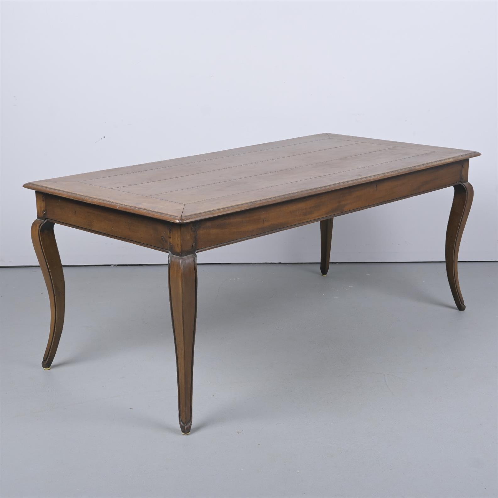 AN AMERICAN CHERRY WOOD DINING TABLE IN PROVINCIAL FRENCH STYLE (A/F) (76H X 187W X 93D CM) (THIS ITEM MUST BE REMOVED BY CARRIERS AT THE CUSTOMER'S EXPENSE. LEONARD JOEL STAFF CANNOT ASSIST CARRYING THIS ITEM)