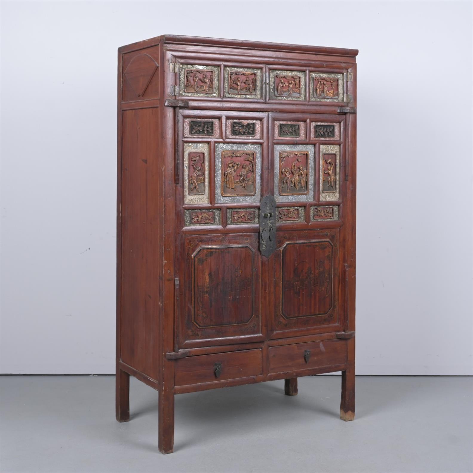 AN ANTIQUE CHINESE WEDDING CABINET (175H X 98W X 54D CM) (THIS ITEM MUST BE REMOVED BY CARRIERS AT THE CUSTOMER'S EXPENSE. LEONARD JOEL STAFF CANNOT ASSIST CARRYING THIS ITEM)