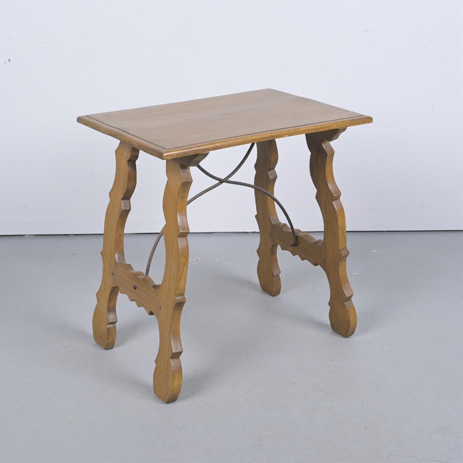 A SPANISH STYLE SIDE TABLE WITH WROUGHT IRON BRACES (72H X 71W X 50D CM) (LEONARD JOEL DELIVERY SIZE: LARGE)