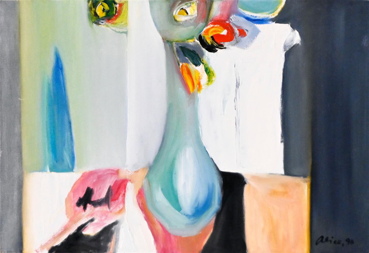 OIL ON BOARD, SIGNED AND DATED ALICE '90 LOWER RIGHT, 45.5 X 61CM