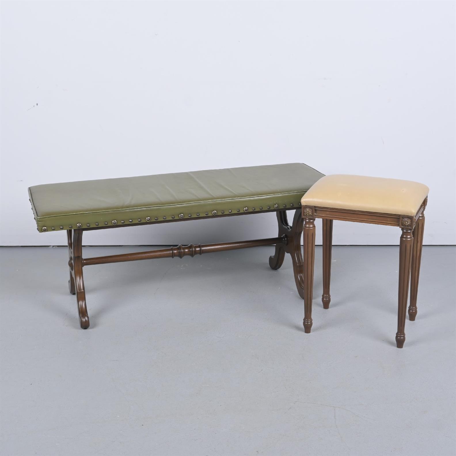 TWO LEATHER UPHOLSTERED STOOLS (49H X 124W X 48D CM) (LEONARD JOEL DELIVERY SIZE: X-LARGE)