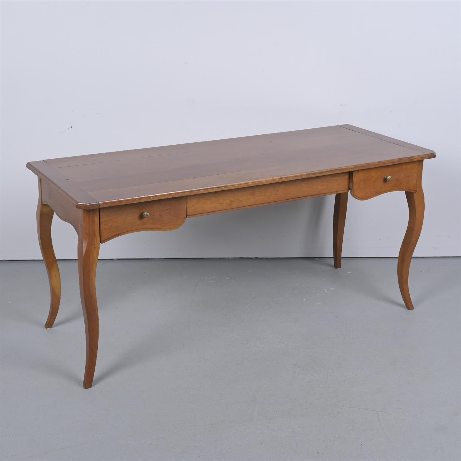 A PROVINCIAL FRENCH-STYLE CHERRY WOOD WRITING TABLE (A/F) (75H X 165W X 68D CM) (LEONARD JOEL DELIVERY SIZE: X-LARGE)