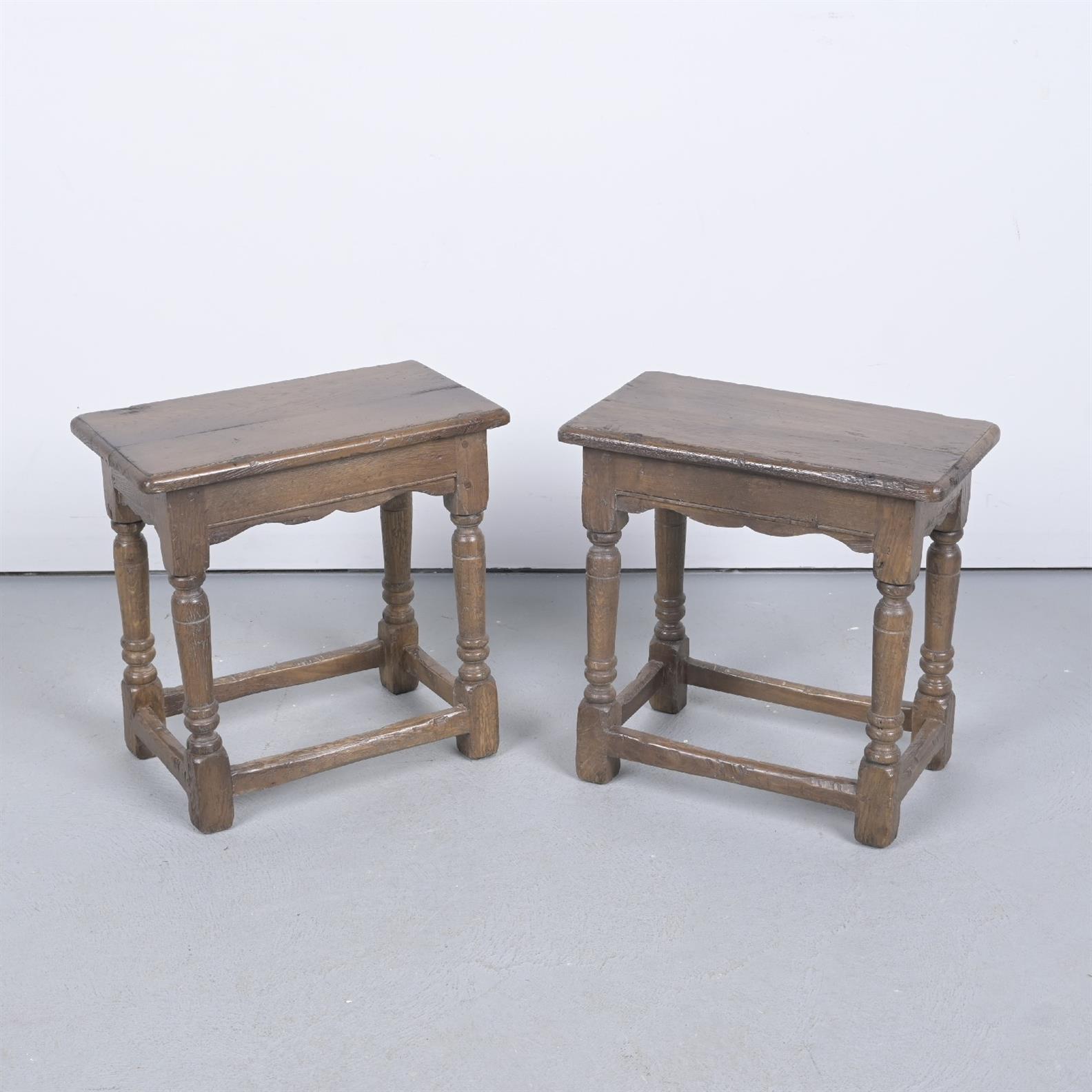 A PAIR OF OAK JOINT STOOLS (46H X 46W X 26D CM) (LEONARD JOEL DELIVERY SIZE: LARGE)