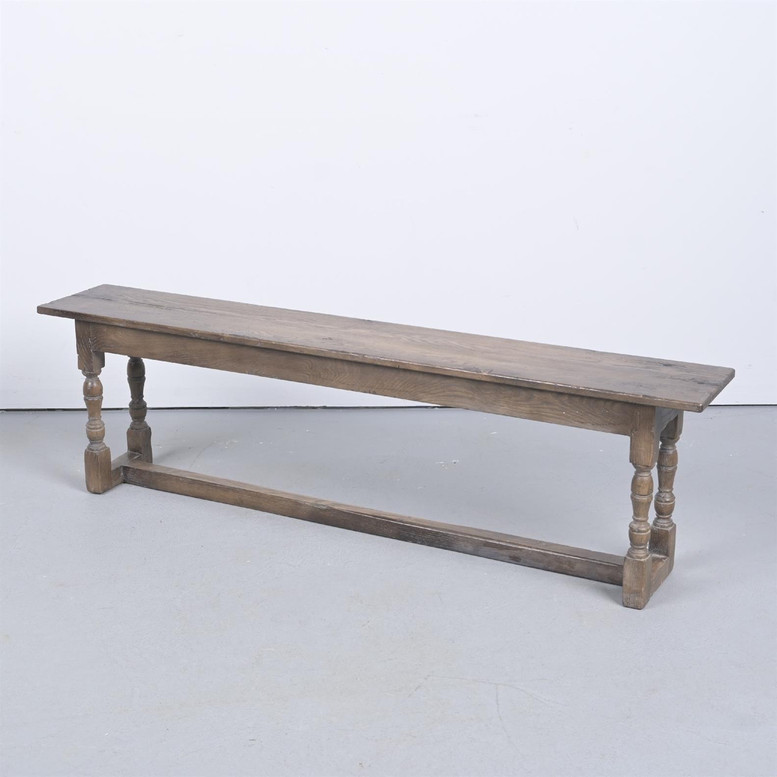 AN OAK FARMHOUSE TYPE BENCH (47H X 160W X 27D CM) (LEONARD JOEL DELIVERY SIZE: X-LARGE)